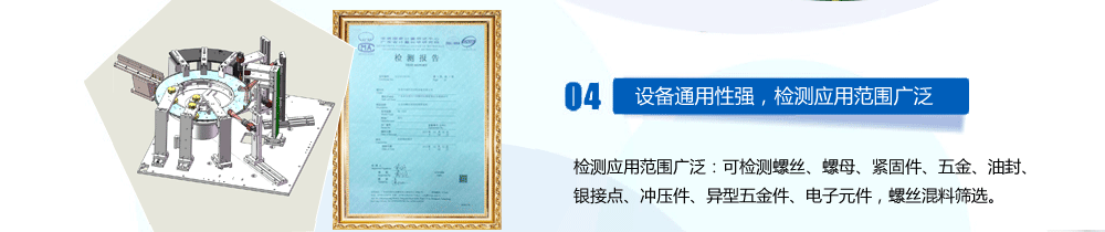 主營產品:光學影像篩選機,螺絲全檢設備,螺母全檢設備,自動在線檢測設備