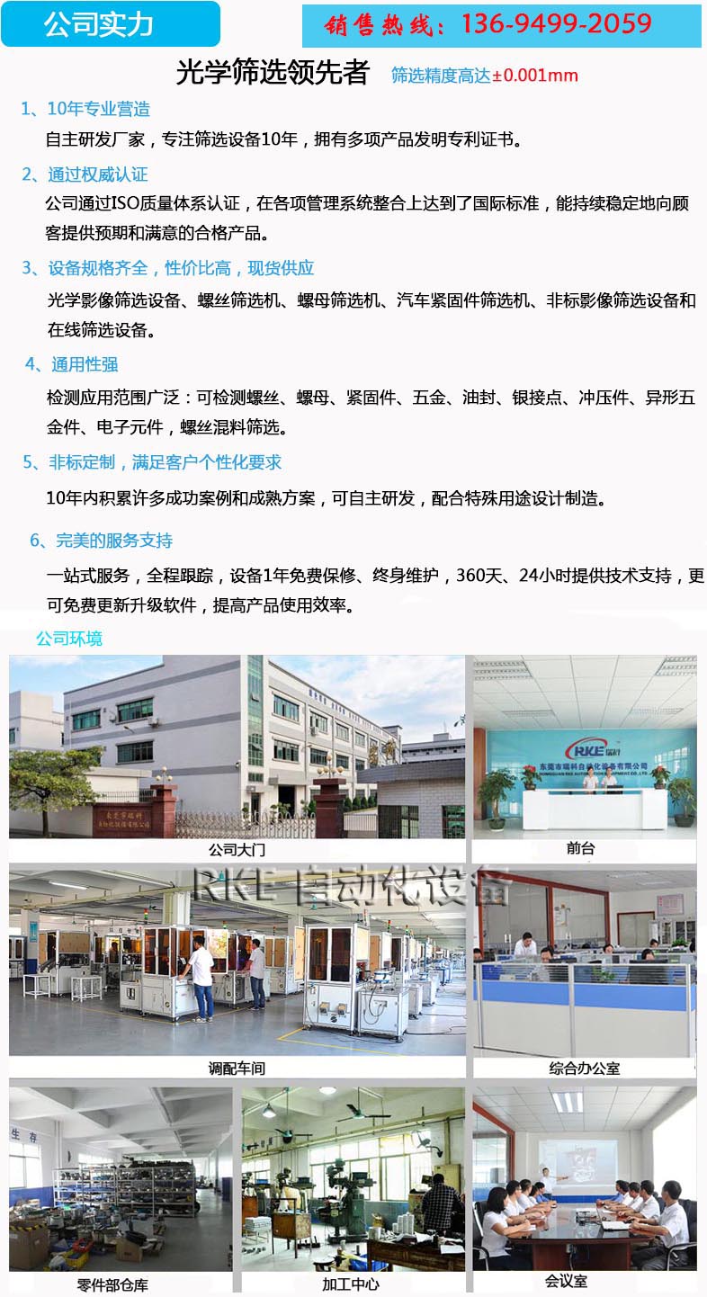 瑞科專注于光學視覺自動化檢測多年,經過不懈的努力,我們在該領域上積累了豐富的經驗,實踐上擁有了許多成功案例和成熟方案,建立了科學規范的管理體系,形成了一支不斷創新、進取和富有競爭力的團隊,成為國內“光學影像篩選設備領 先者”!公司本著質量第 一,服務至上的企業宗旨,以穩健的步伐逐步為廣大客戶提供更多優質的設備。