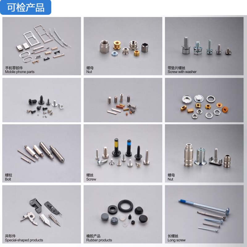 硬體配備包含振動(dòng)送料機(jī)、下料軌道、檢驗(yàn)平臺(tái)、計(jì)算機(jī)系統(tǒng)為一安全、便利,且節(jié)省人力成本的自動(dòng)化設(shè)備。分別介紹如下: